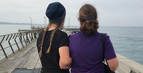 My daughter and I pull up in the five-minute waiting zone outside the bus station. She relays her brother’s text messages to me.